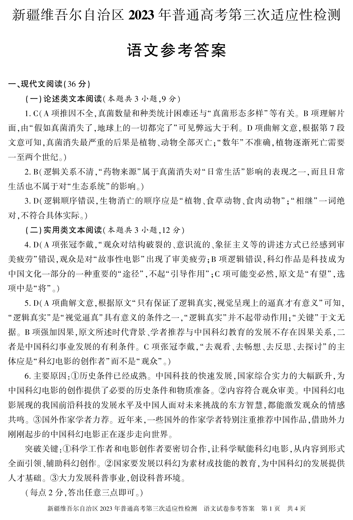 如果你想下载2023新疆三模语文答案DOC或PDF版,请点击本文末链接!