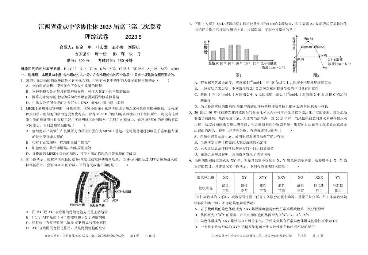 下载2023江西重点协作体二联高三理综PDF格式或doc