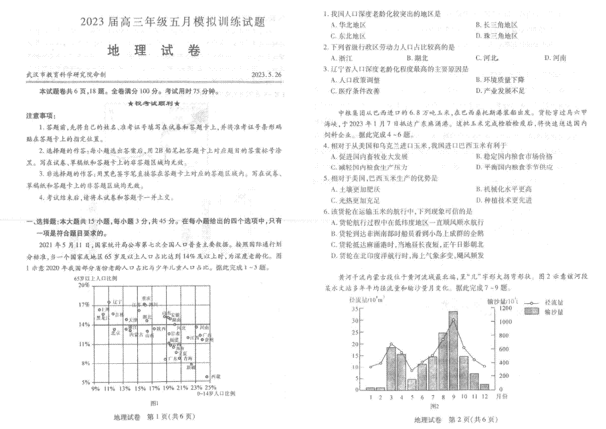 如果你想下载2023武汉市5月高三地理DOC或PDF版,请点击本文末链接!