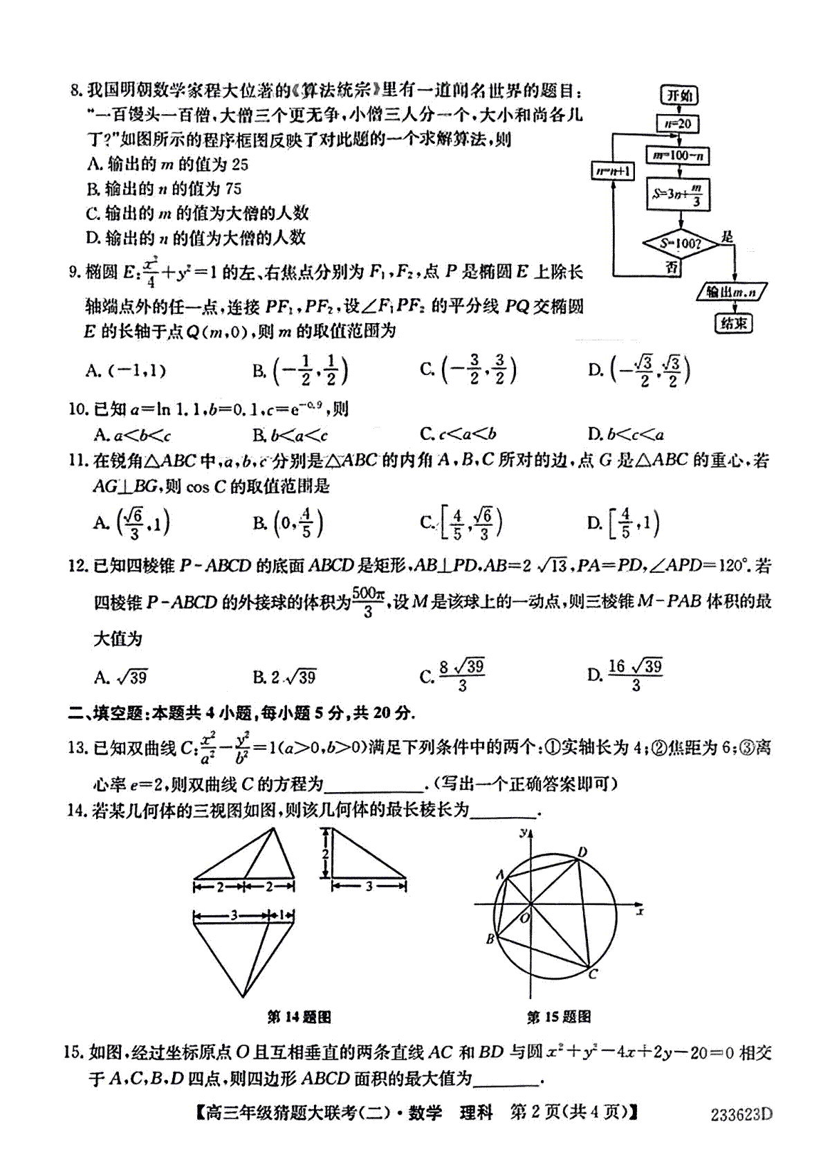 一、河南省TOP二十名校2023届高三猜题大联考(二)理数
