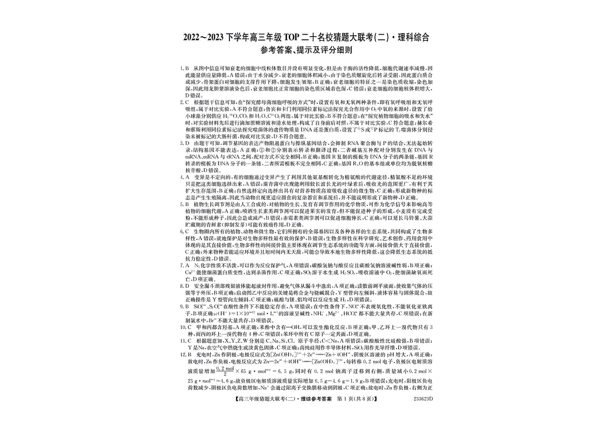 如果你想下载河南省TOP二十名校2023届高三猜题大联考(二)理科综合DOC或PDF版,请点击本文末链接!