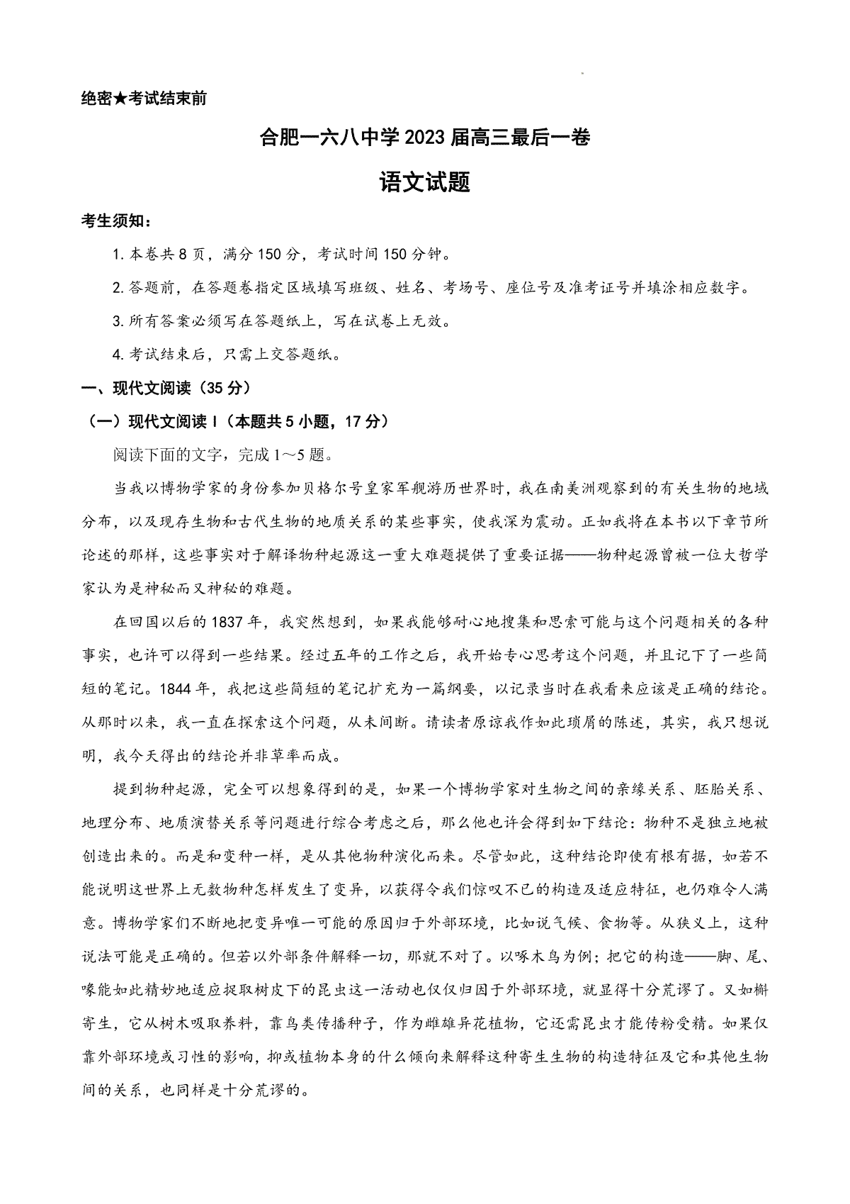当前位置:首页 > 高中试卷 > 2023合肥168最后一卷语文