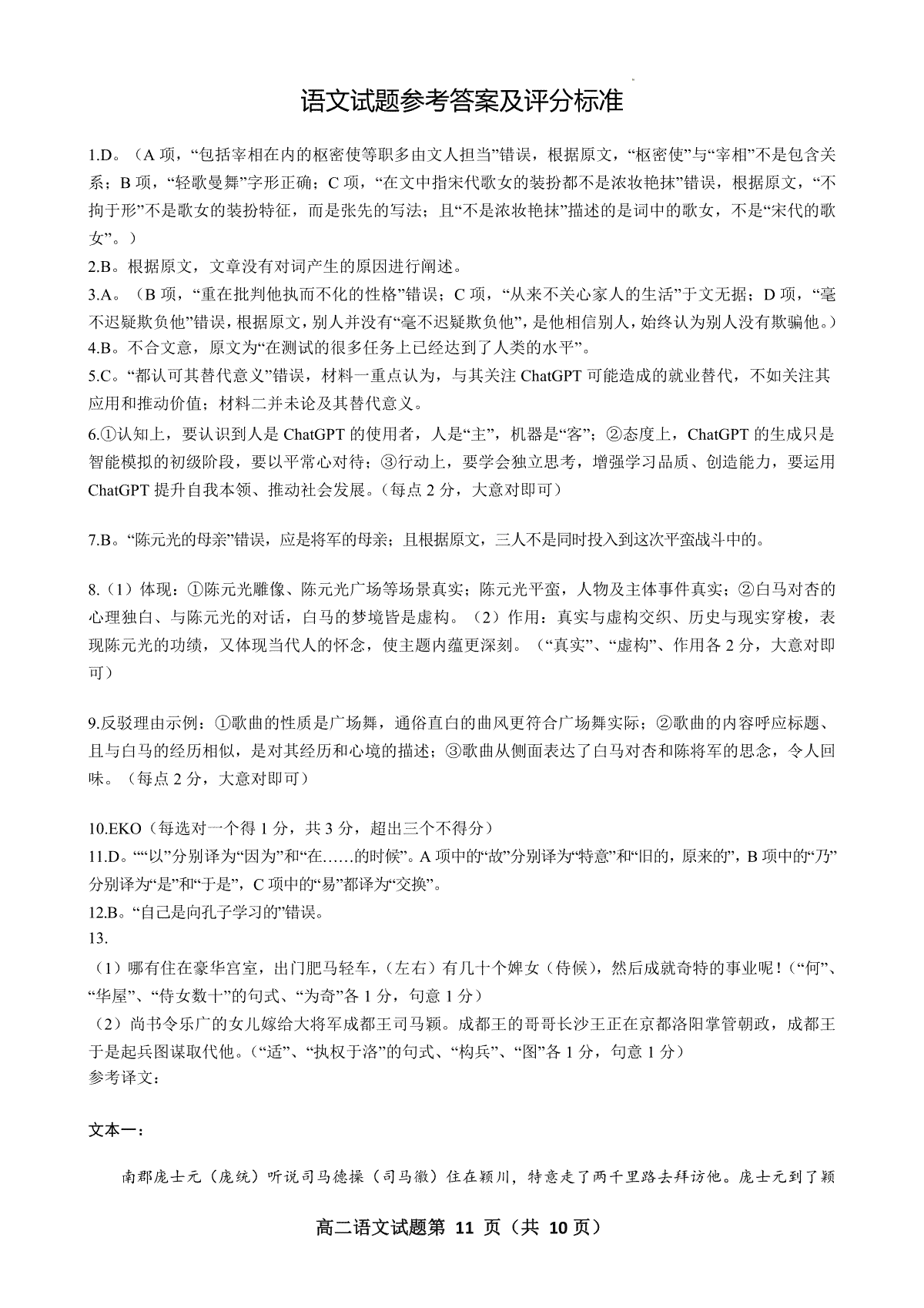 如果你想下载2023达州高二期末语文DOC或PDF版,请点击本文末链接!