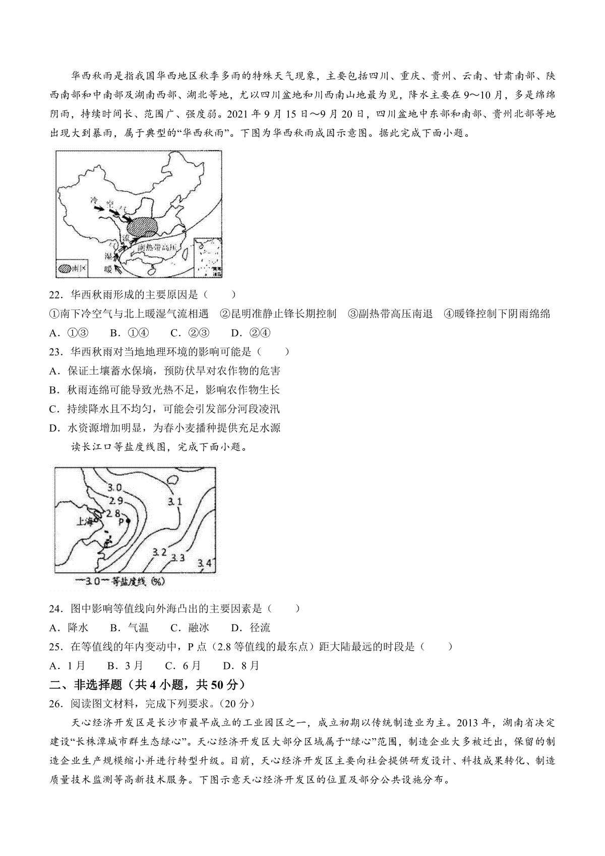 一、山西省运城市2023-2024学年高三上学期摸底调研测试 地理