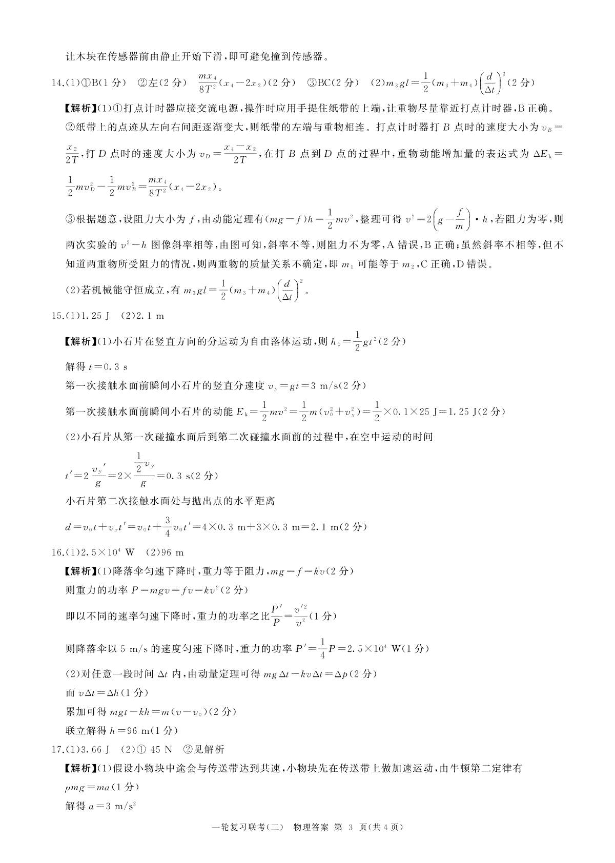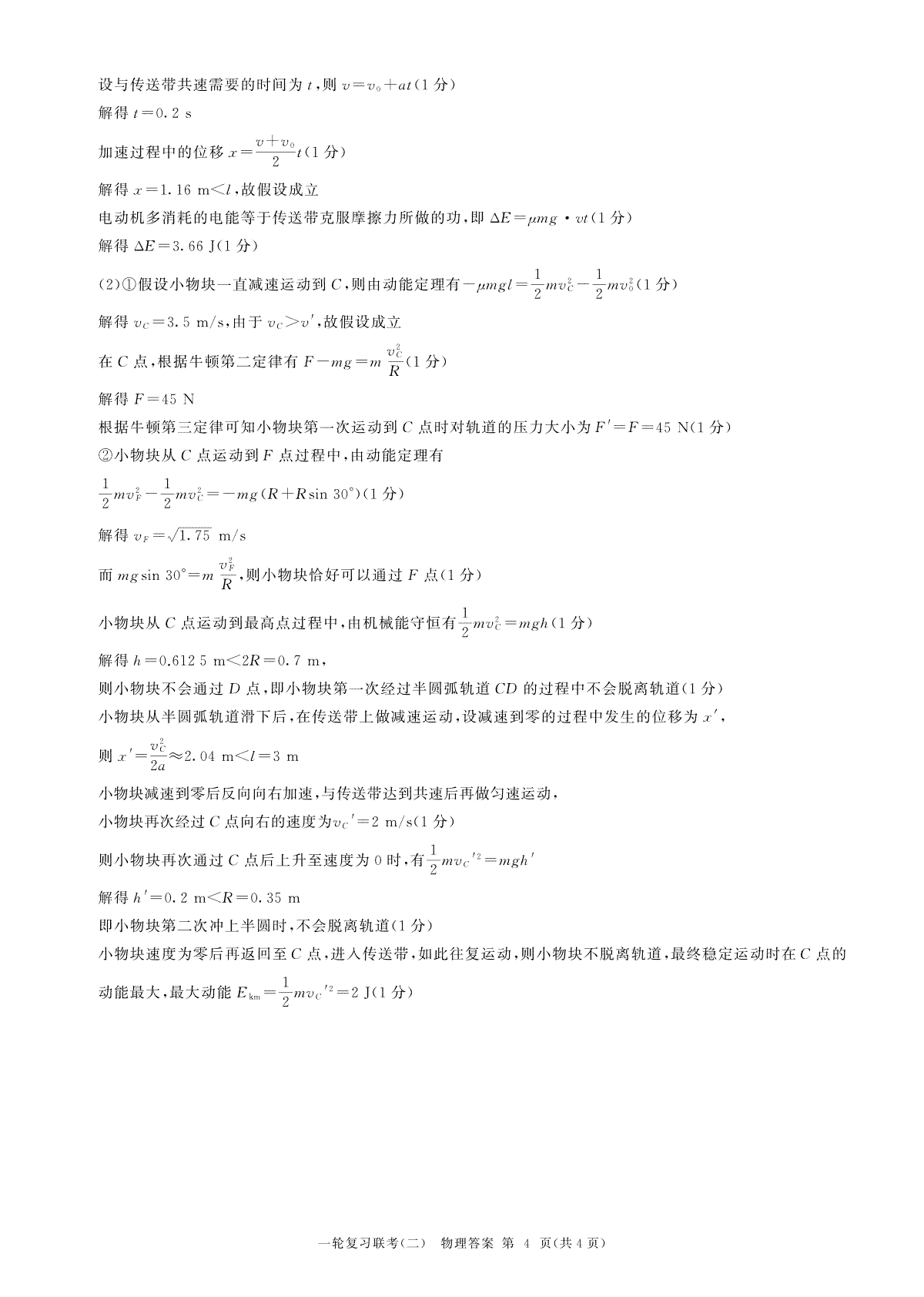 一、2023年10月百师联盟一轮物理答案