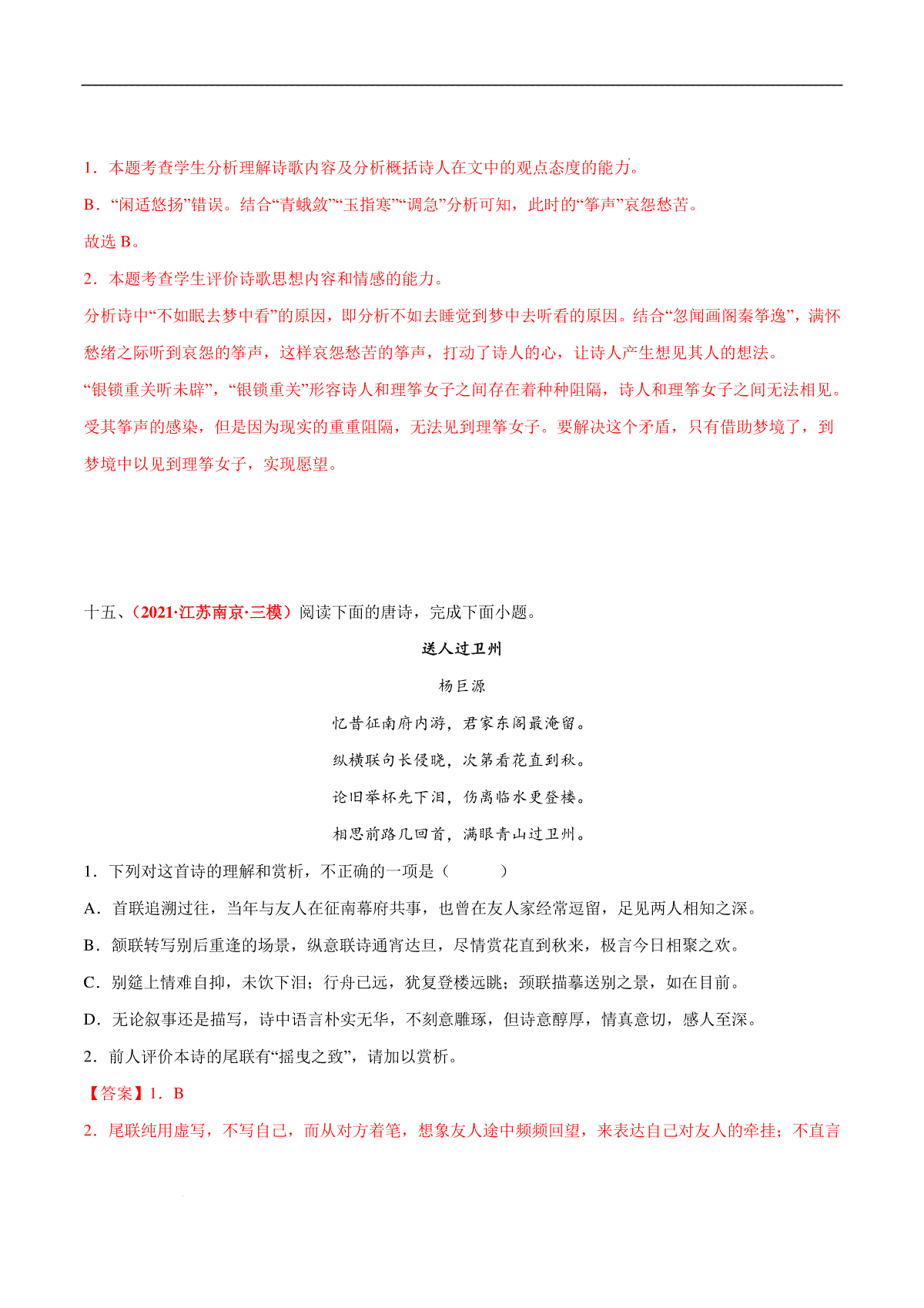 一、专题4 古代诗歌阅读-2022年高考语文模拟题分项汇编(江苏专用)(解析版)