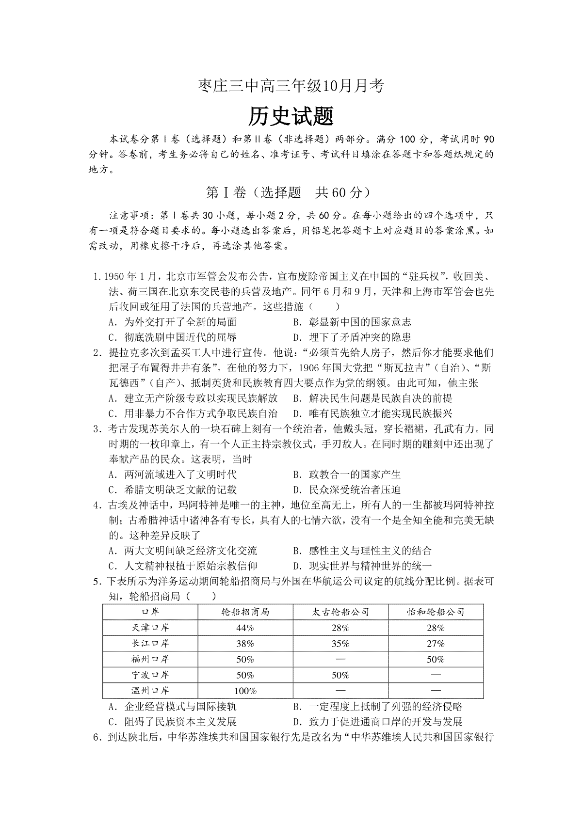 如果你想下载山东省枣庄市第三中学2023-2024学年高三上学期10月月考历史试题DOC或PDF版,请点击本文末链接!