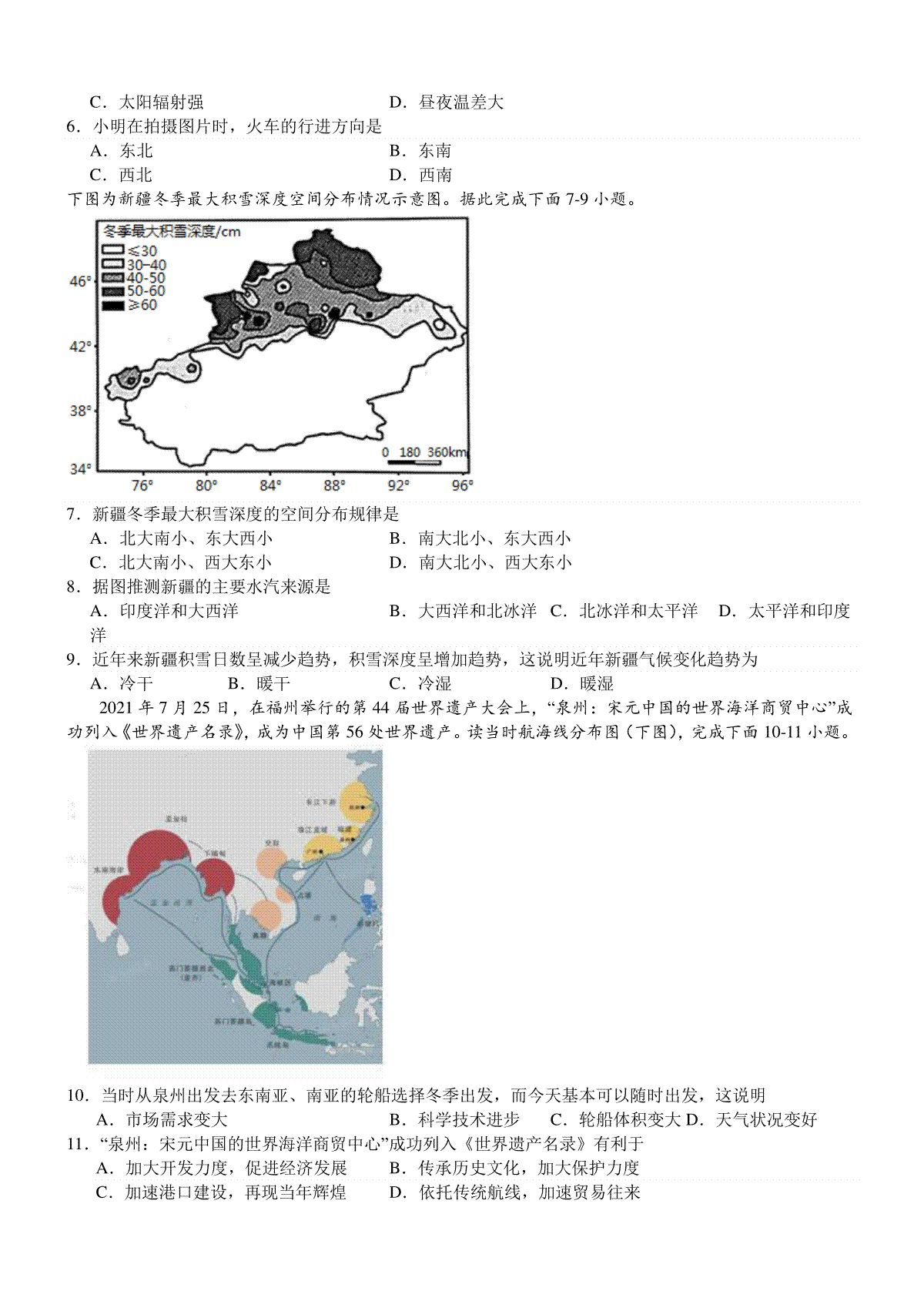 一、泸县五中高2021级高三上期第二月考试文科综合试题