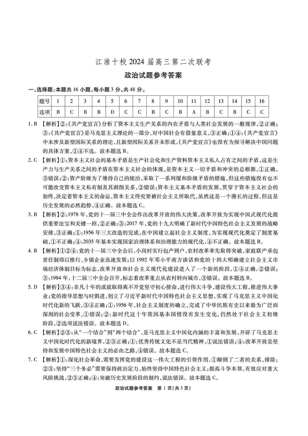 下载安徽省江淮十校2024届高三第二次联考政治答案PDF格式或doc