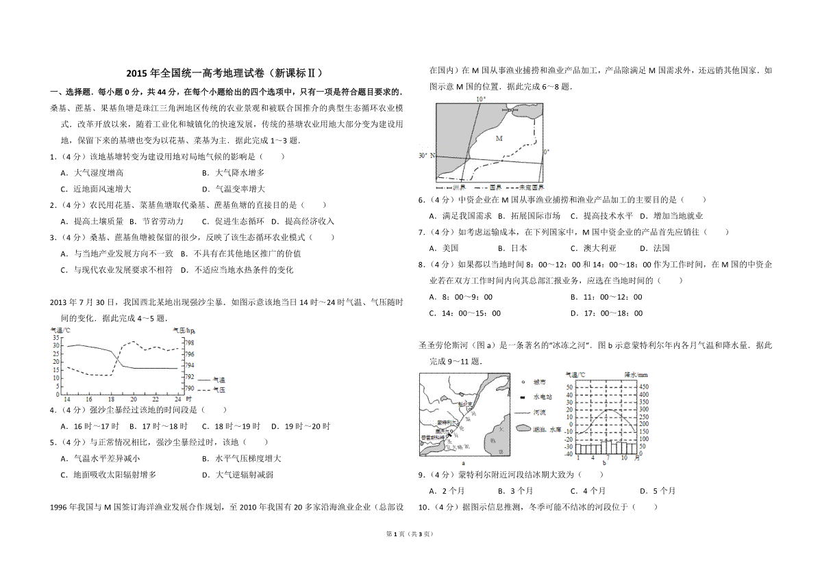 一、2015年全国统一高考地理试卷(新课标ⅱ)(原卷版)