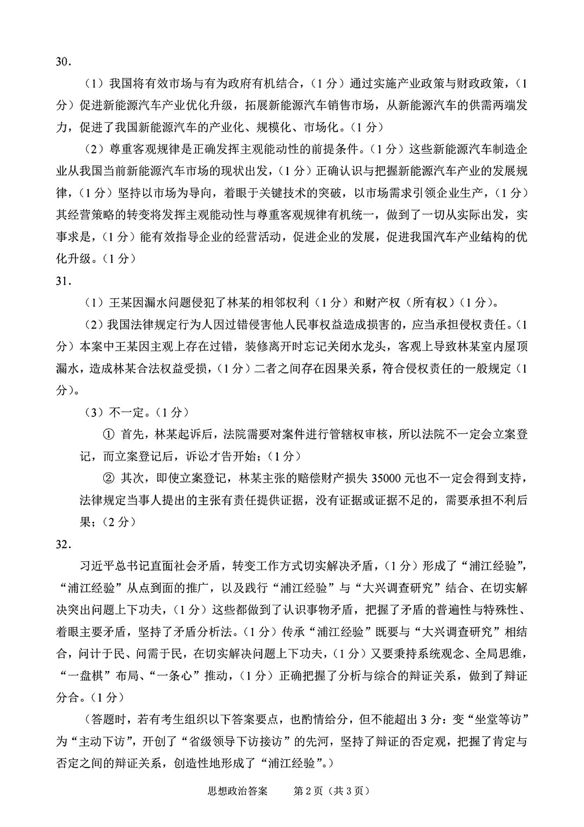 一、浙江省绍兴市2023-2024学年高三上学期11月选考科目诊断性考试 政治答案