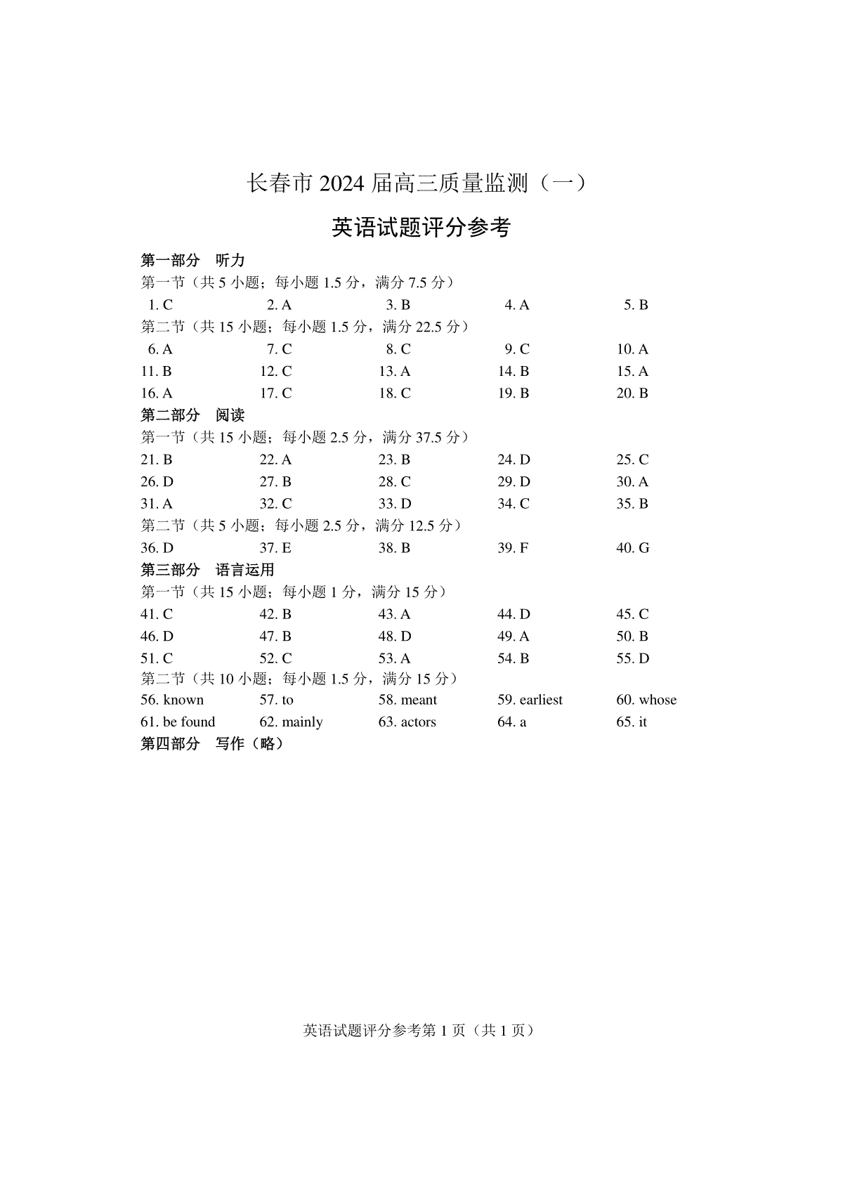 如果你想下载2024届吉林省长春市高三上学期质量监测(一)英语答案DOC或PDF版,请点击本文末链接!