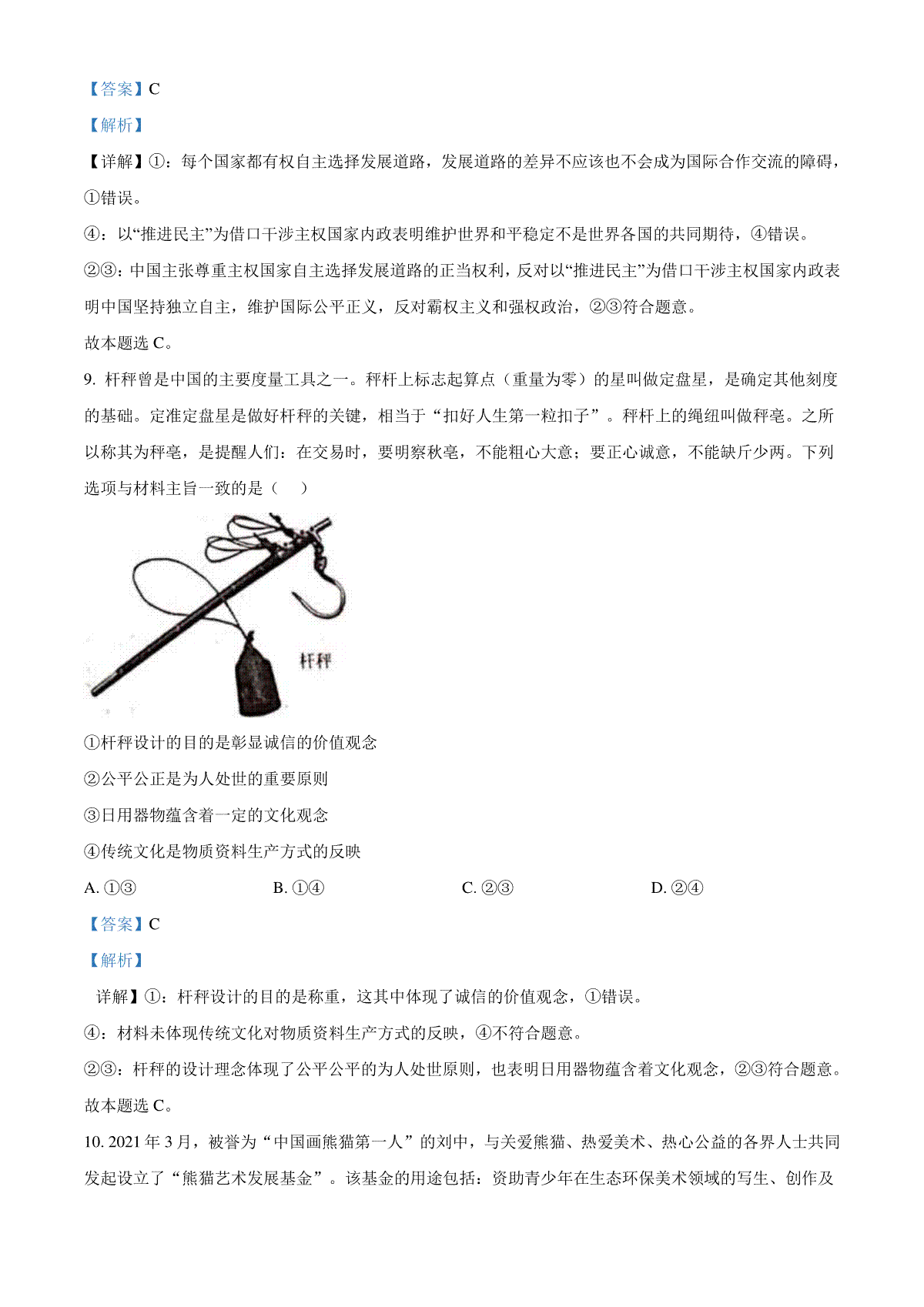 一、2021年河北省普通高中学业水平选择性考试政治试题(解析版)