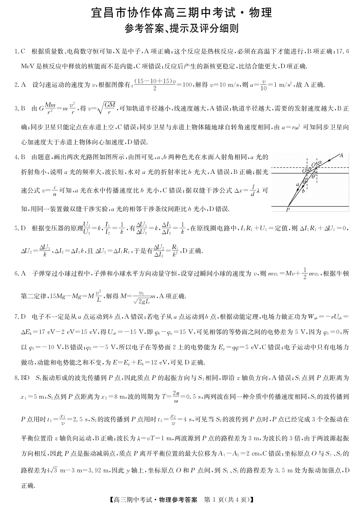 如果你想下载湖北省宜昌市协作体2023-2024学年高三上学期期中考试 物理答案DOC或PDF版,请点击本文末链接!