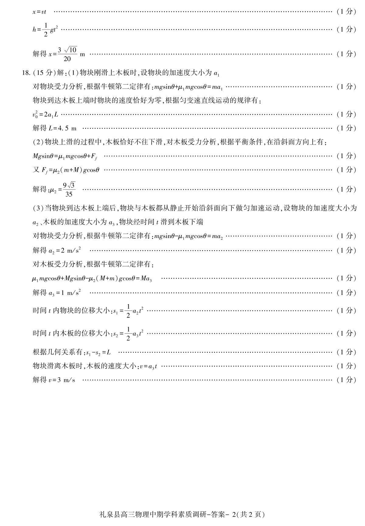 如果你想下载陕西省咸阳市礼泉县2023-2024学年度第一学期中期学科素质调研答案--礼泉县高三物理期中DOC或PDF版,请点击本文末链接!
