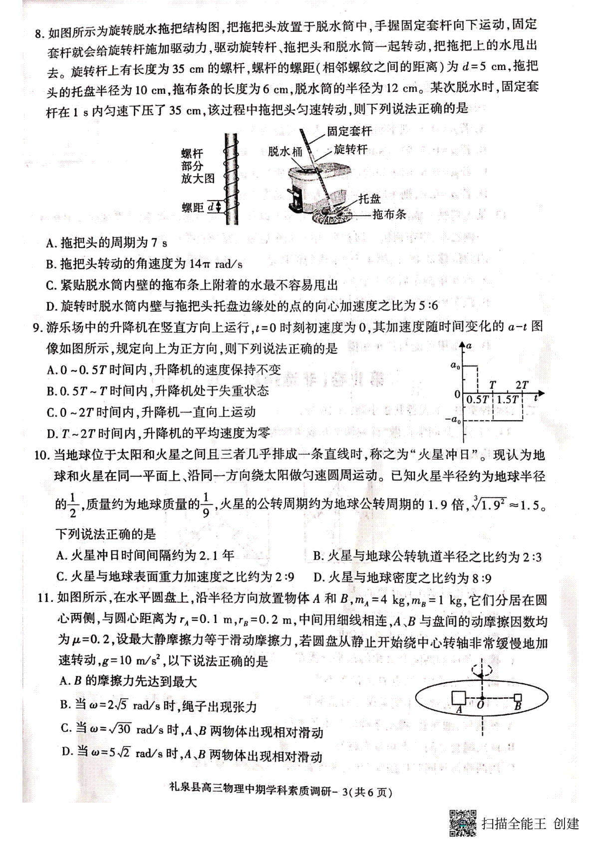 如果你想下载咸阳市礼泉县2023-2024学年度第一学期中期学科素质调研 物理DOC或PDF版,请点击本文末链接!