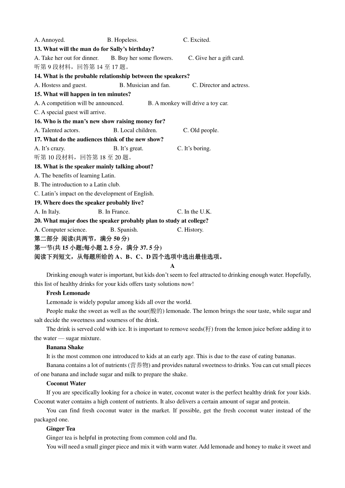 一、江西省宜春市丰城中学2023-2024学年高三上学期期中考试 英语