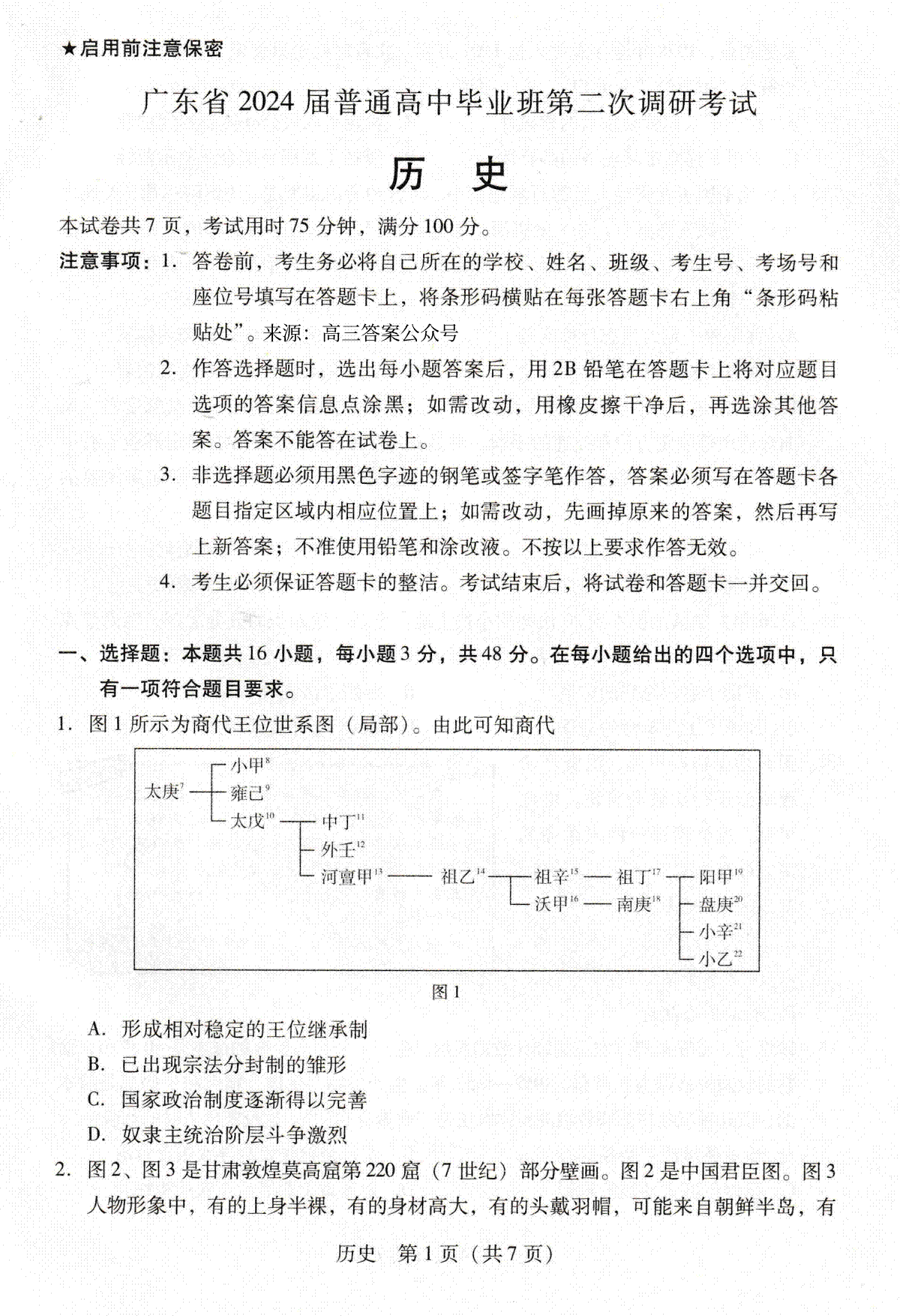 如果你想下载广东省普通高中(粤光联考)2023-2024学年高三上学期第二次调研考试历史DOC或PDF版,请点击本文末链接!