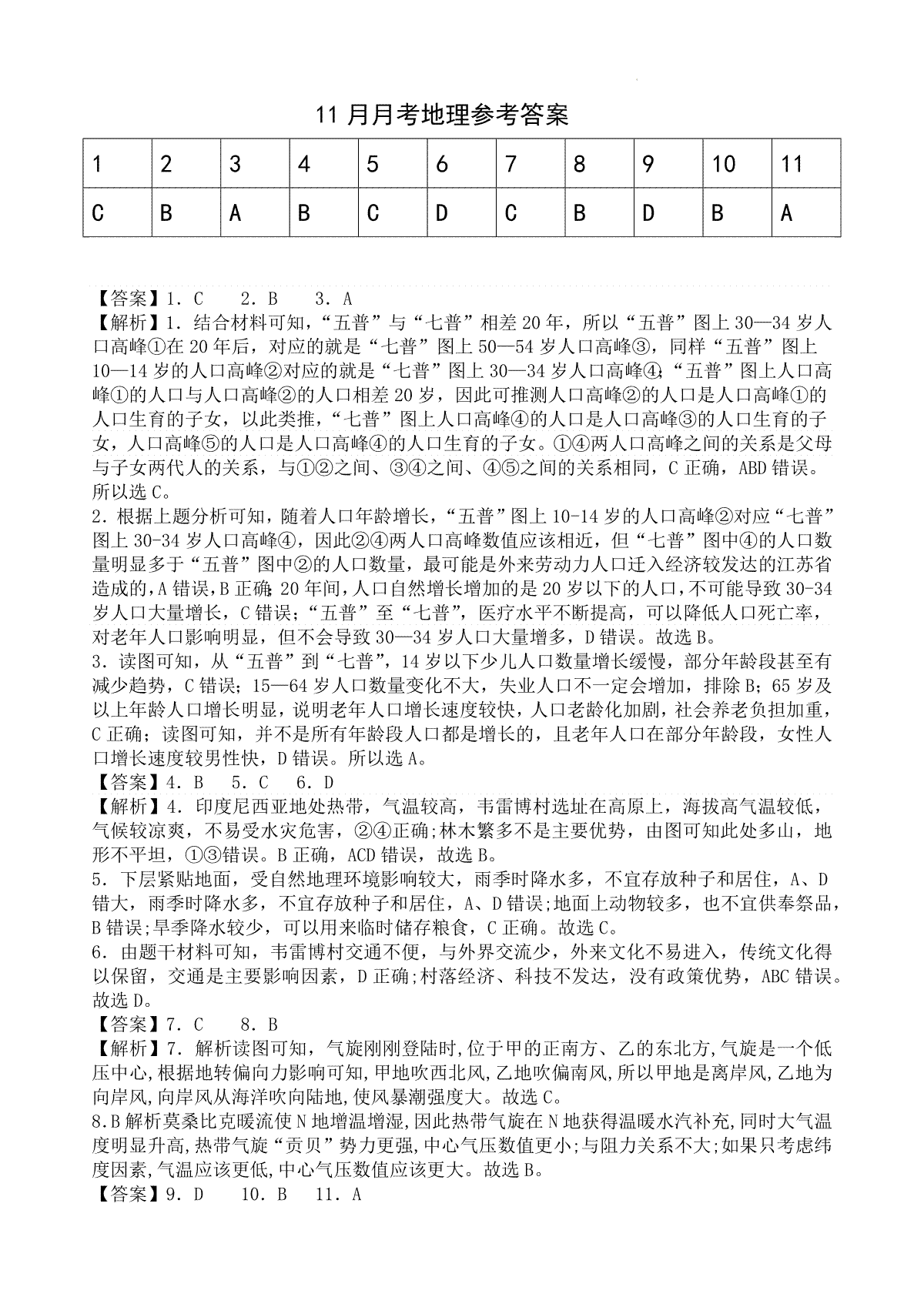 一、四川省绵阳市南山中学实验学校高三(补习班)上学期11月月考 文综