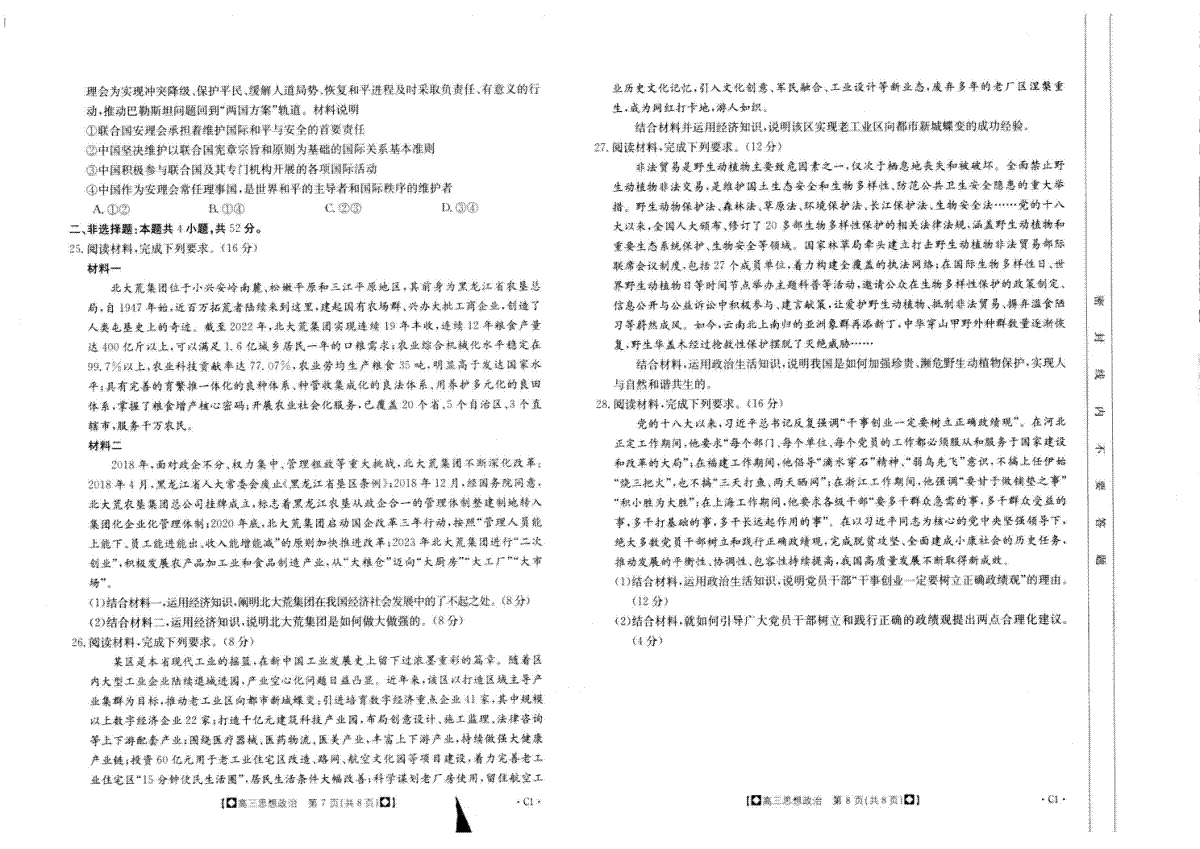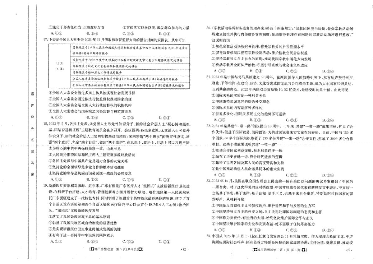 一、陕西省部分学校2023-2024学年高三上学期期中联考 政治