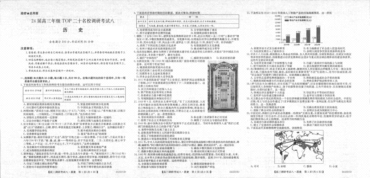 一、河南省TOP二十名校2023-2024学年高三上学期调研考试(八)历史