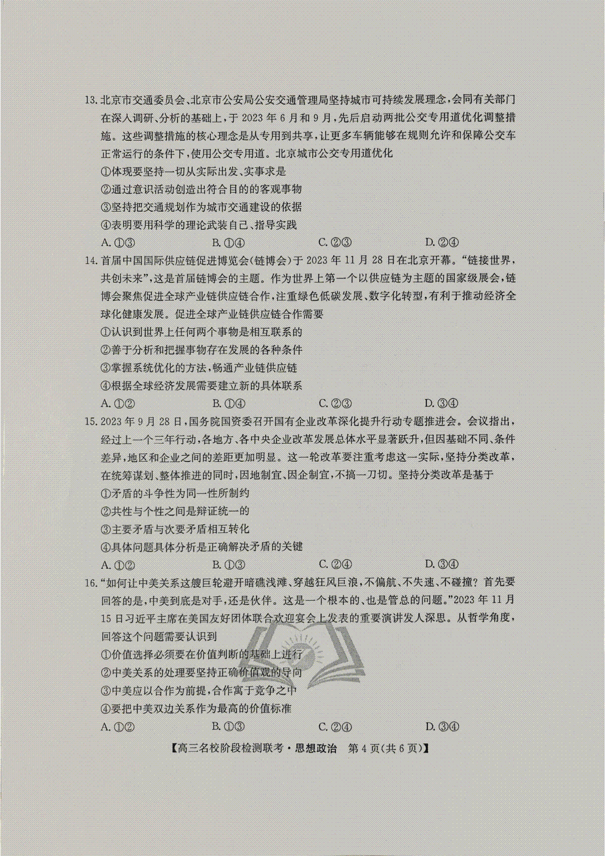 一、政治-2024届“耀正优 ”12月高三名校阶段检测联考