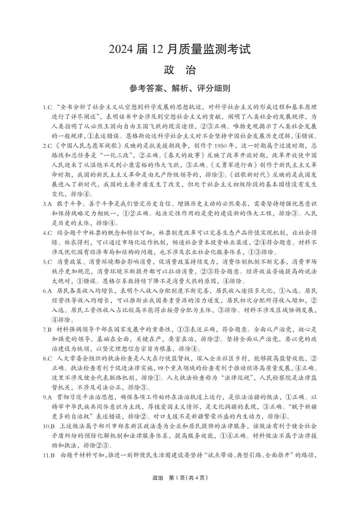如果你想下载菁师联盟·河南省2023-2024学年高三上学期12月学情调研 政治答案DOC或PDF版,请点击本文末链接!