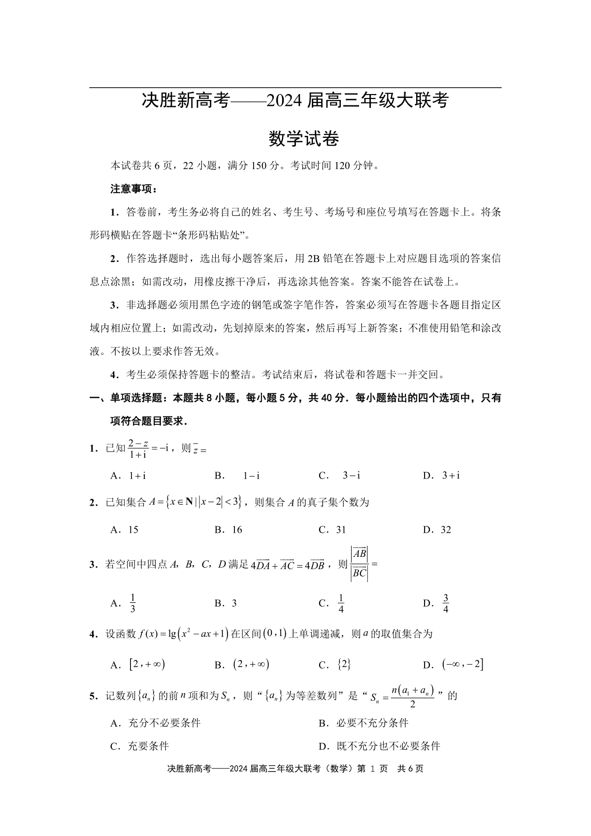 如果你想下载江苏省决胜新高考2023-2024学年高三上学期12月大联考数学DOC或PDF版,请点击本文末链接!
