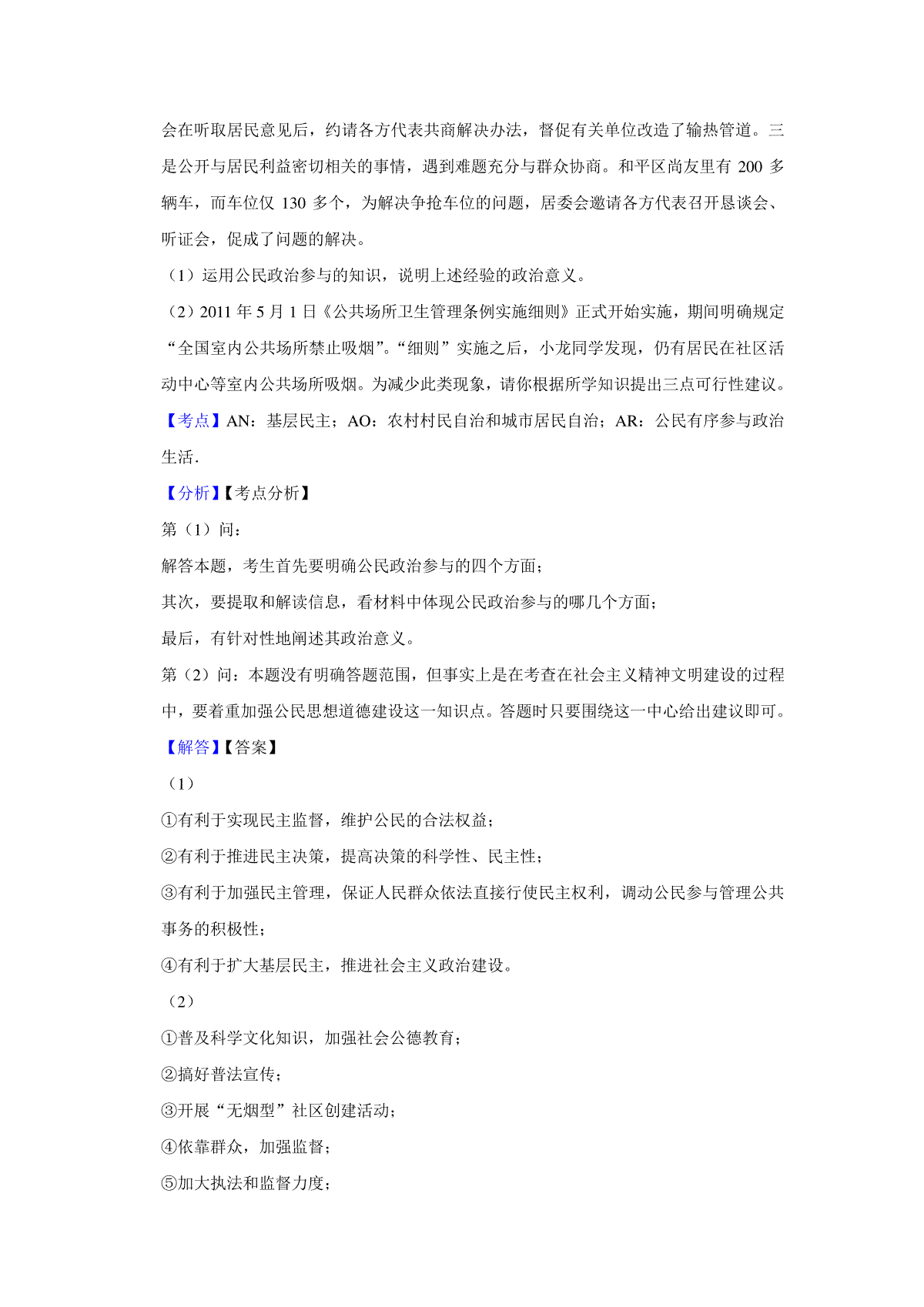 下载2011年天津市高考政治试卷解析版 PDF格式或doc