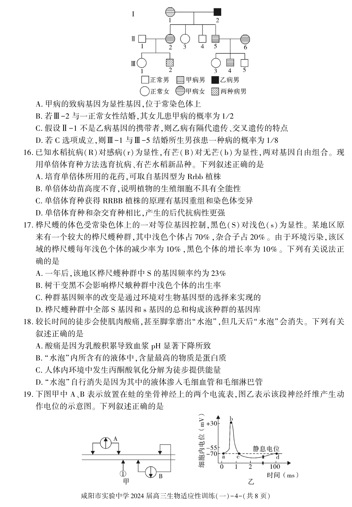 如果你想下载陕西省咸阳市实验中学2022-2023学年高三下学期适应训练(一)生物试题DOC或PDF版,请点击本文末链接!