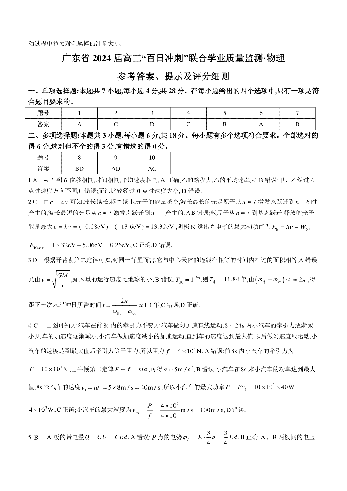如果你想下载2024届广东省高三“百日冲刺”联合学业质量监测(一模)物理试卷DOC或PDF版,请点击本文末链接!