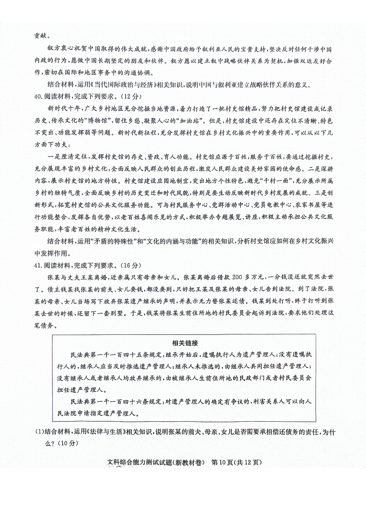 一、2024届3月华大新高考联盟高三文综