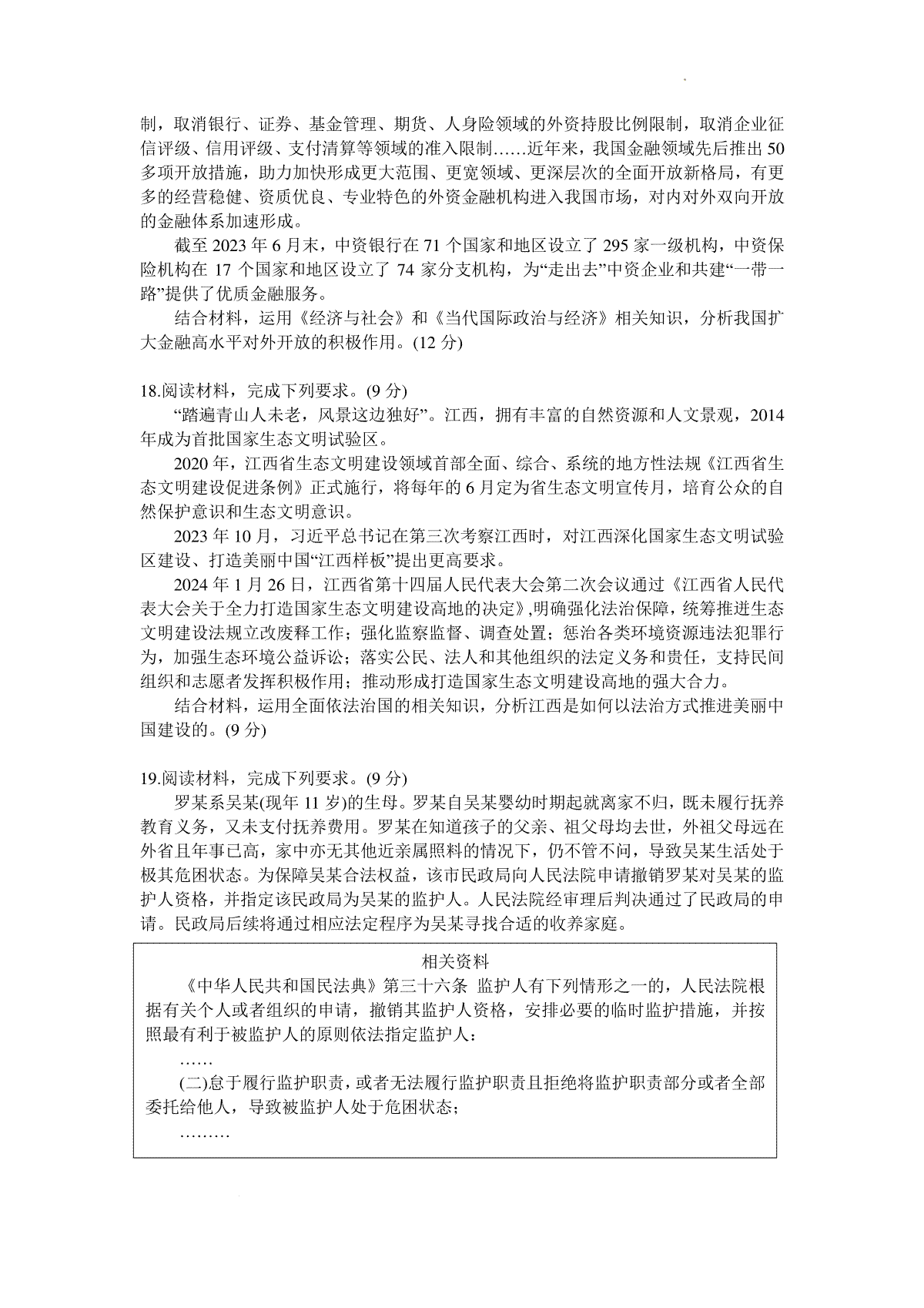 一、2024届江西省高三下学期二轮复习阶段性检测(二模)政治试题