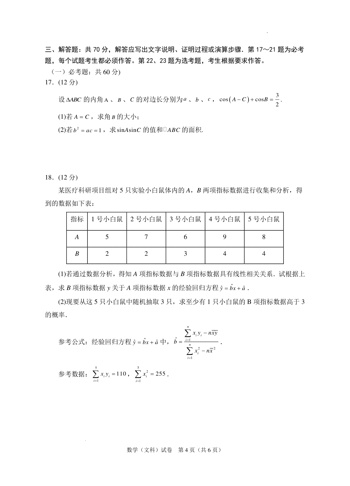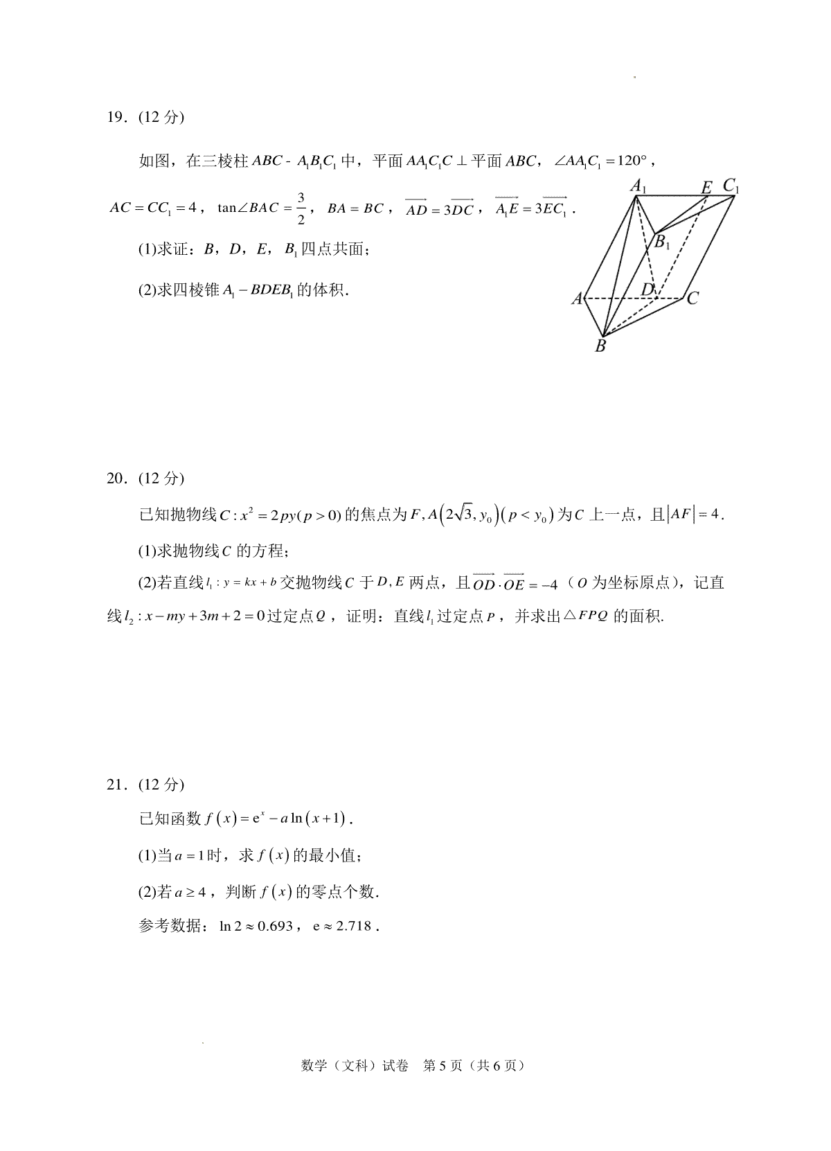 一、宁夏回族自治区银川一中2024届高三一模数学(文科)试卷