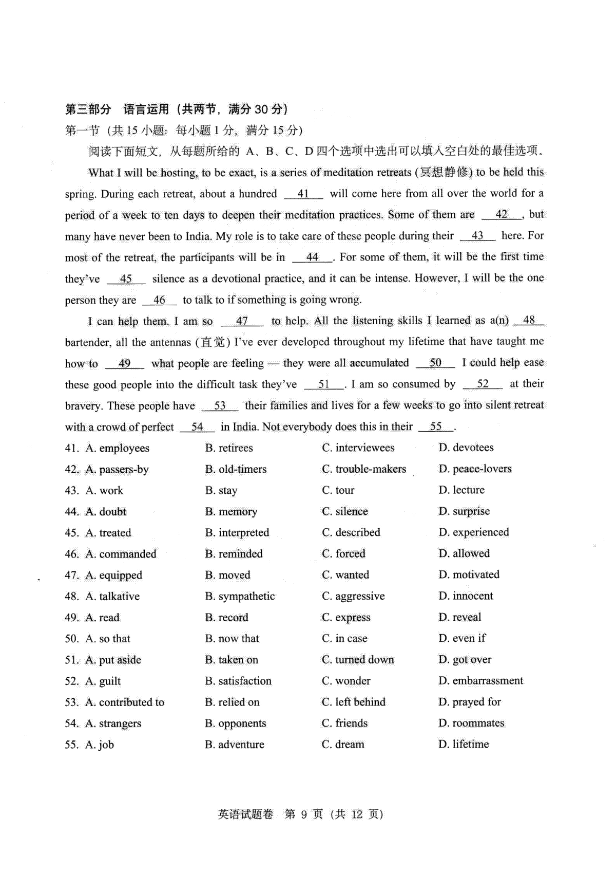 温州市普通高中2024届高三第二次适应性考试英语试卷于近期开考,本次考试对考生对知识的掌握参考价值大,为了方便大家复习掌握错题!小编在下文为大家准备了温州市普通高中2024届高三第二次适应性考试英语试卷试卷及答案解析详情,仅供考生参考。