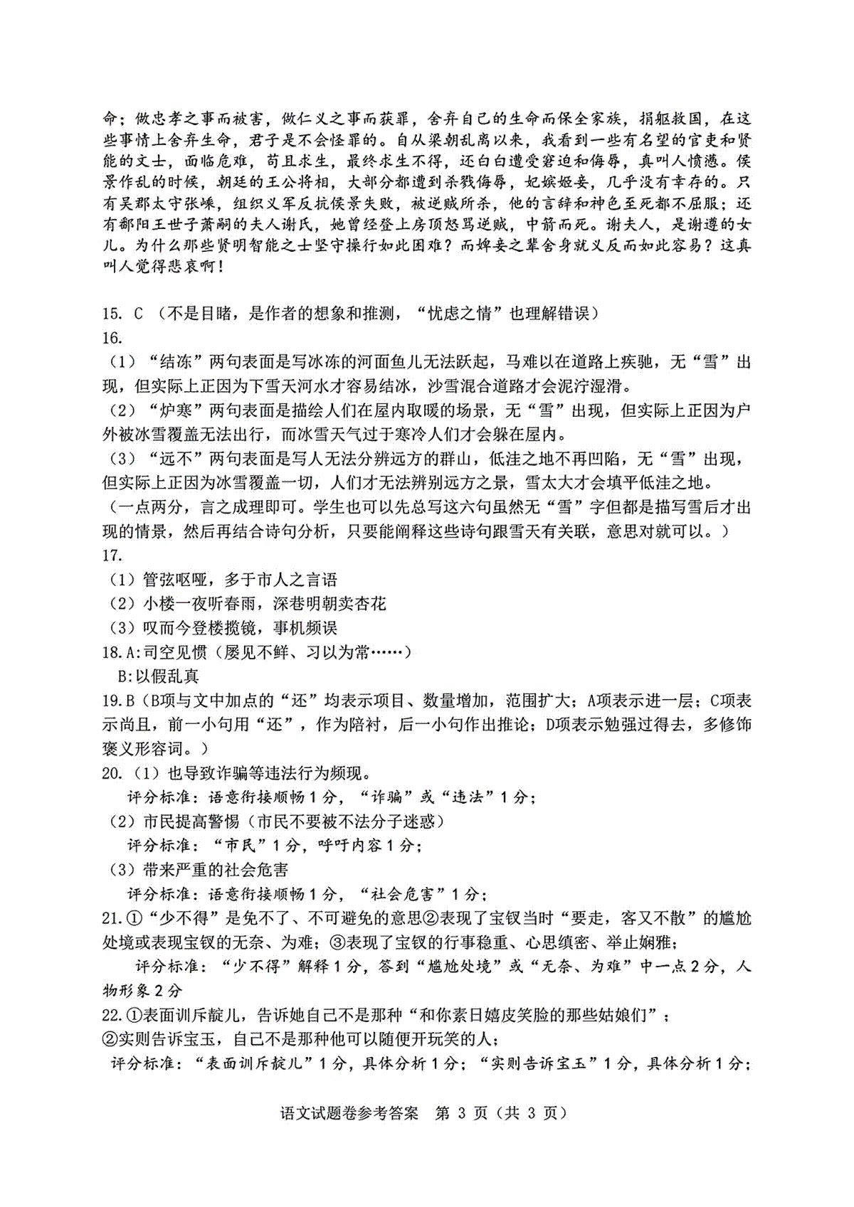 一、温州市普通高中2024届高三第二次适应性考试语文答案