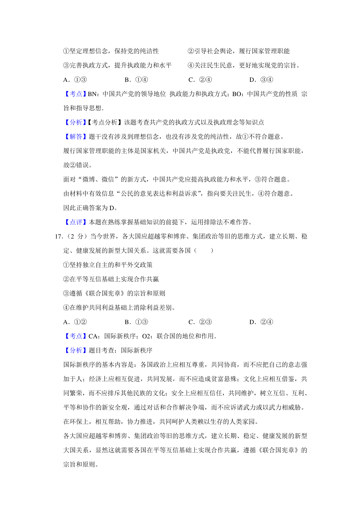 当前位置:首页 > 高中试卷 > 2013年江苏省高考政治试卷解析版