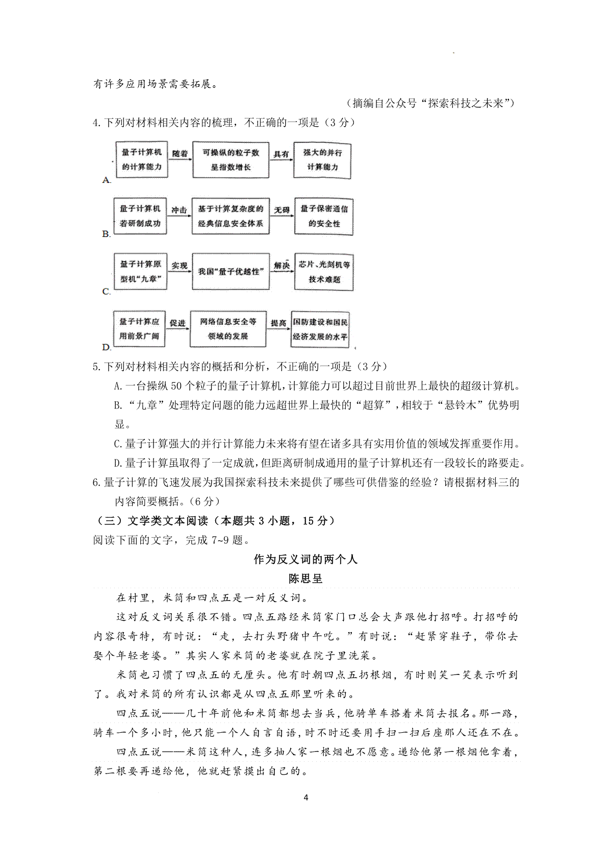一、2024届内蒙古自治区包头市高三下学期二模语文