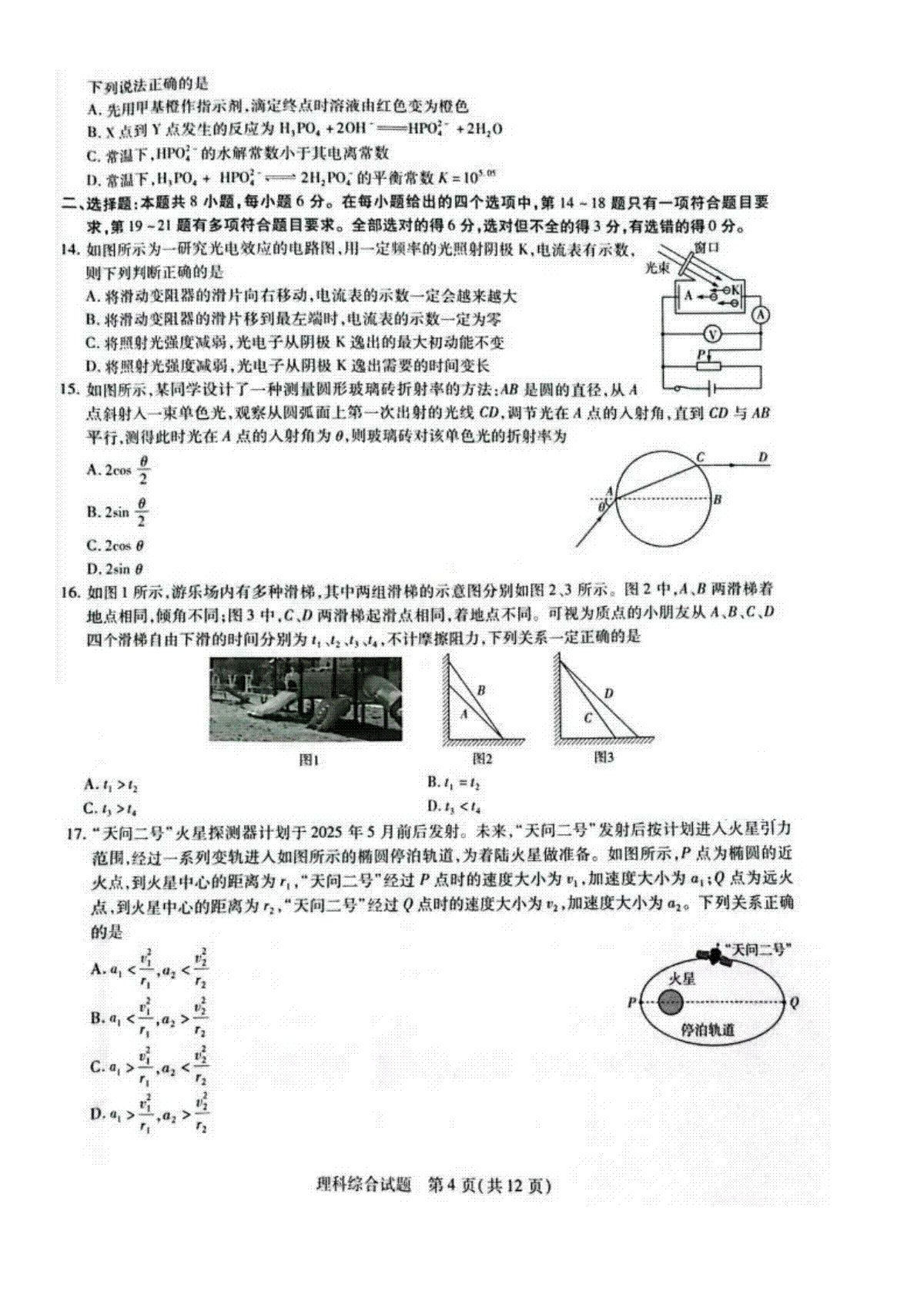 一、河南省四市2023-2024学年高三3月联考(焦作二模)理综试卷