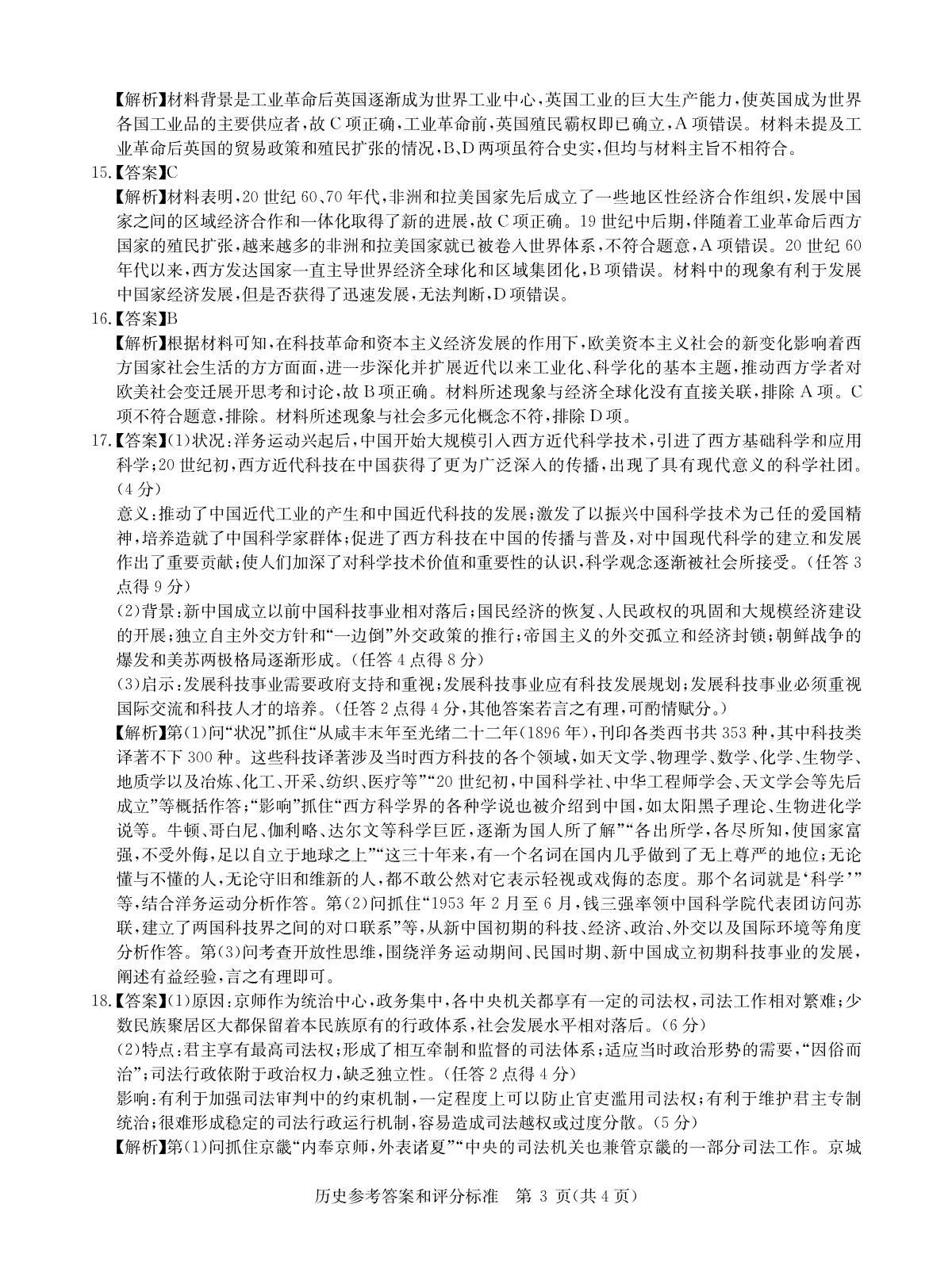 一、华大新高考联盟2024届高三4月教学质量测评(二模)历史安徽卷答案