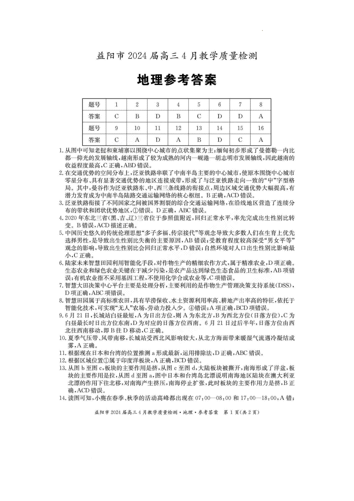如果你想下载2024届湖南省益阳市高三三模地理答案DOC或PDF版,请点击本文末链接!