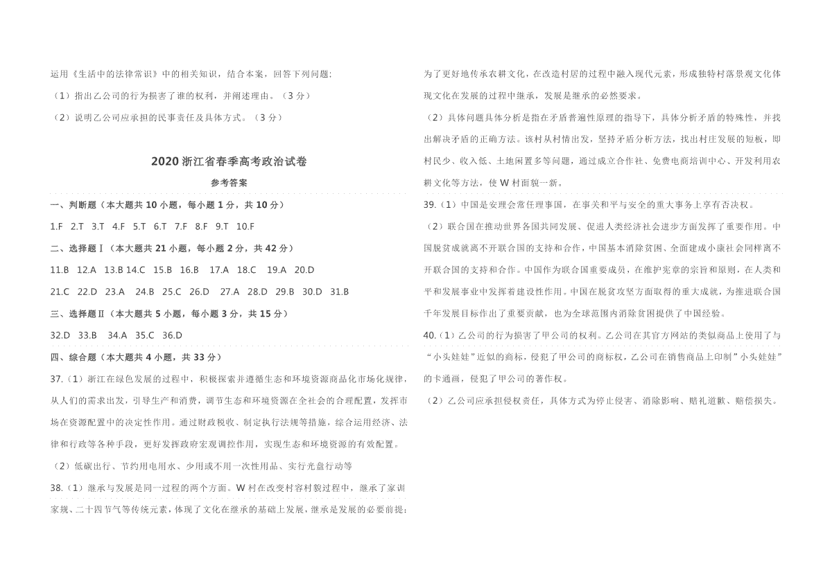 如果你想下载2020年浙江省高考政治【1月】(含解析版)DOC或PDF版,请点击本文末链接!