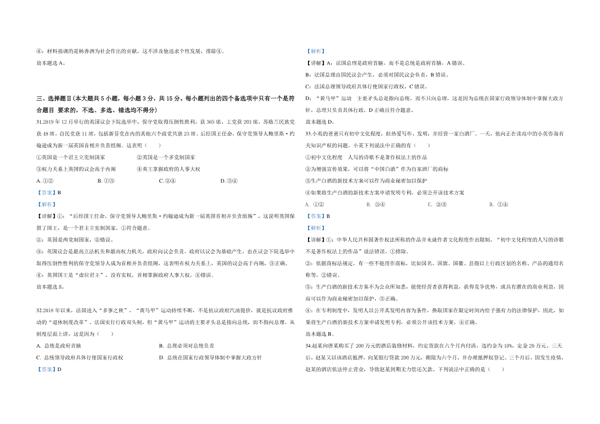 如果你想下载2020年浙江省高考政治【7月】(含解析版)DOC或PDF版,请点击本文末链接!