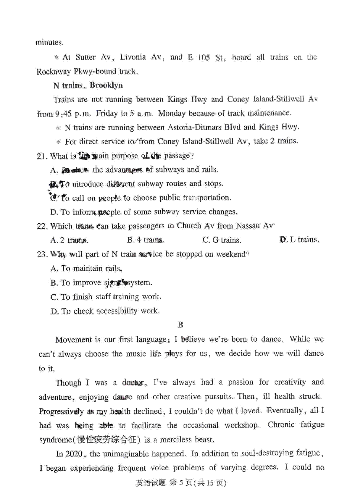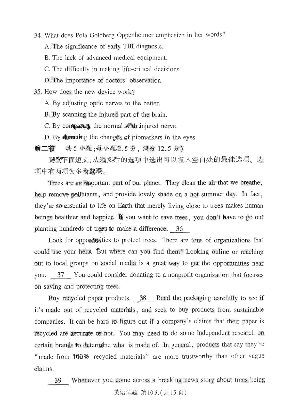 一、湘豫名校联考2024届春季学期高三第三次模拟考试英语