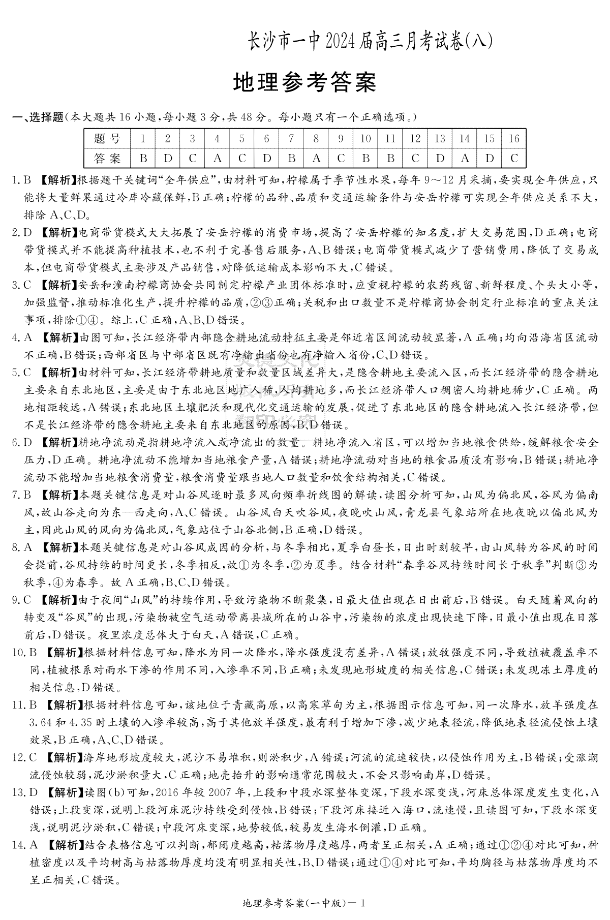 如果你想下载湖南省长沙市第一中学2023-2024学年高三下学期4月月考地理DOC或PDF版,请点击本文末链接!