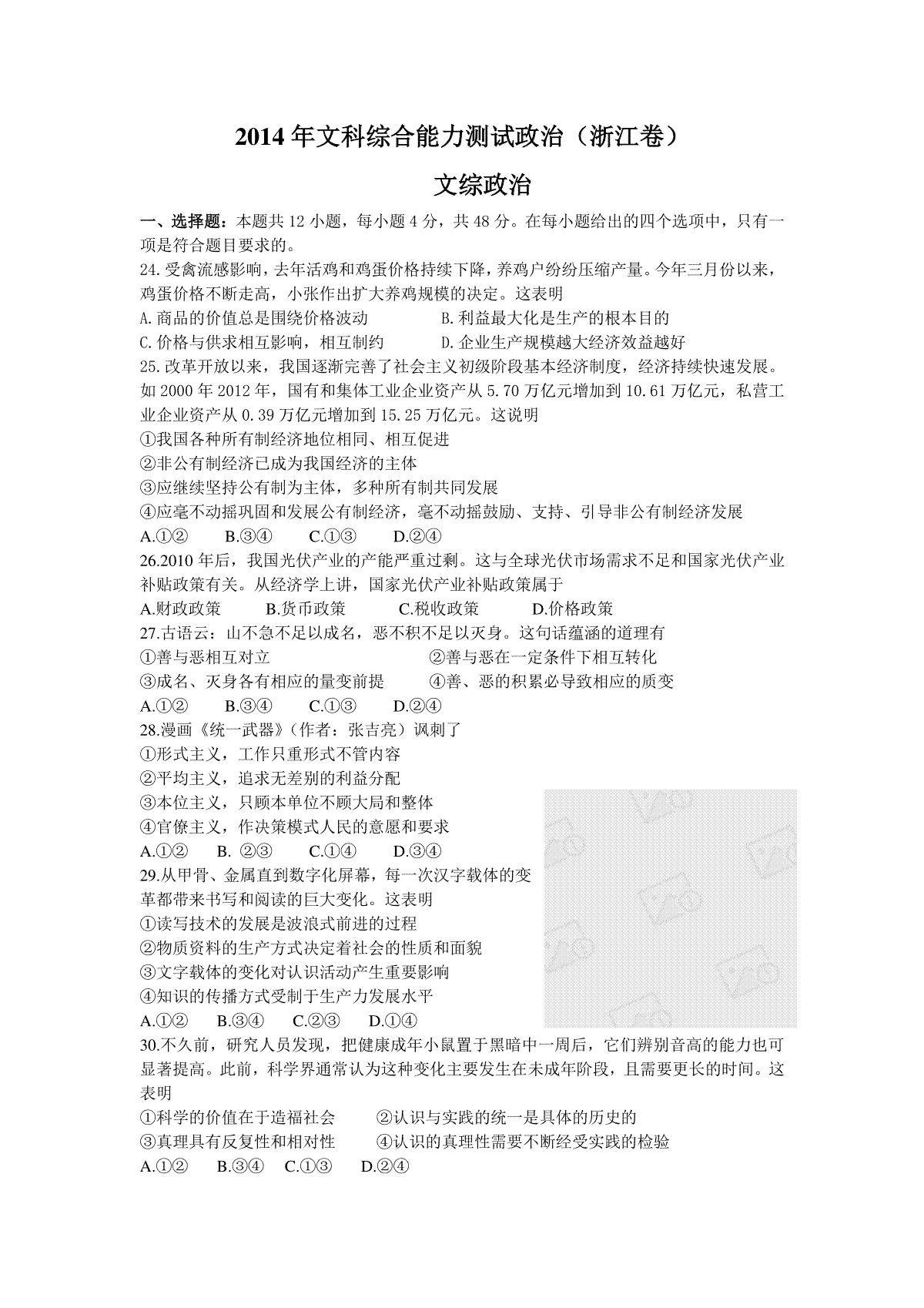 下载2014年浙江省高考政治(原卷版)PDF格式或doc