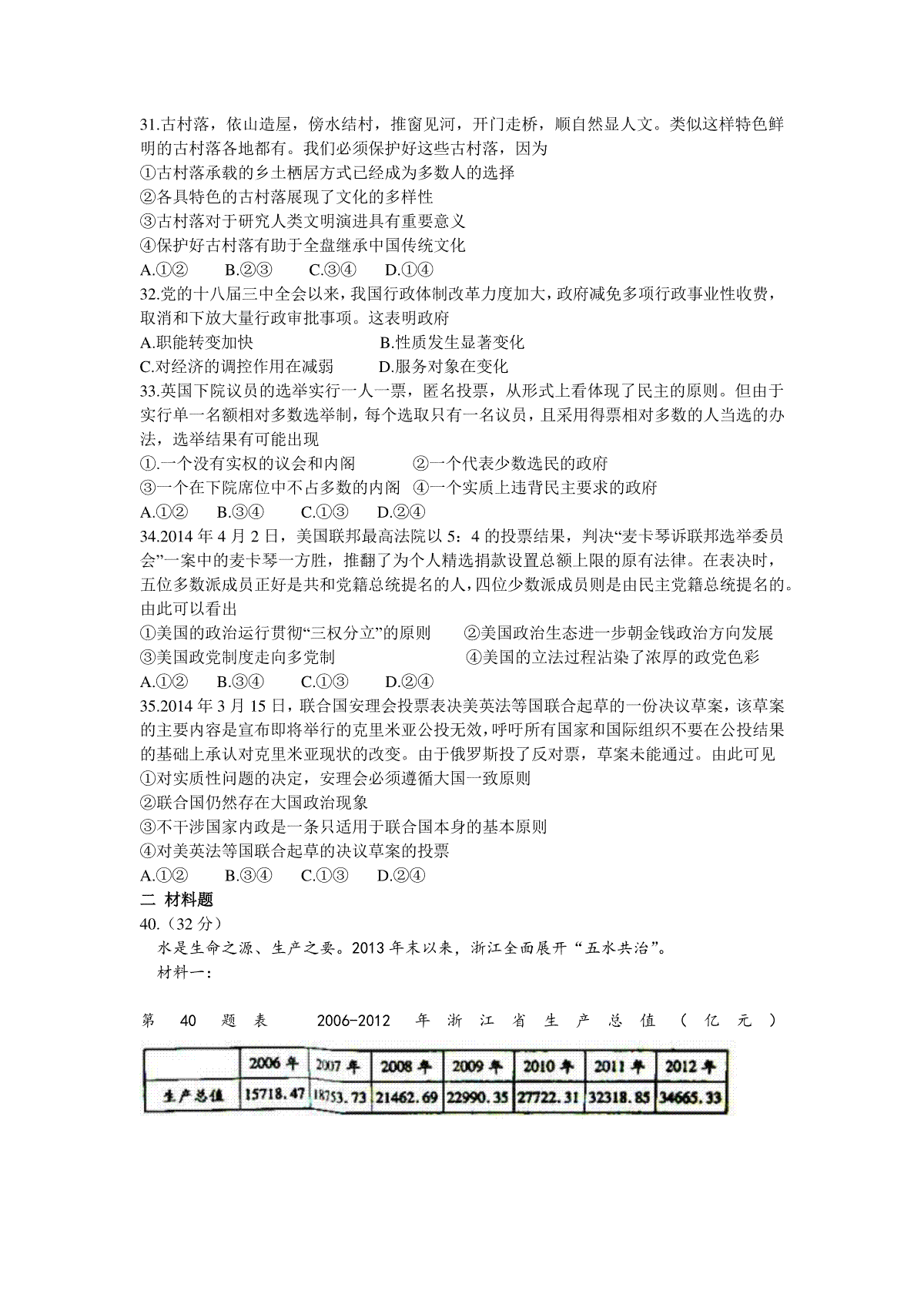 如果你想下载2014年浙江省高考政治(原卷版)DOC或PDF版,请点击本文末链接!