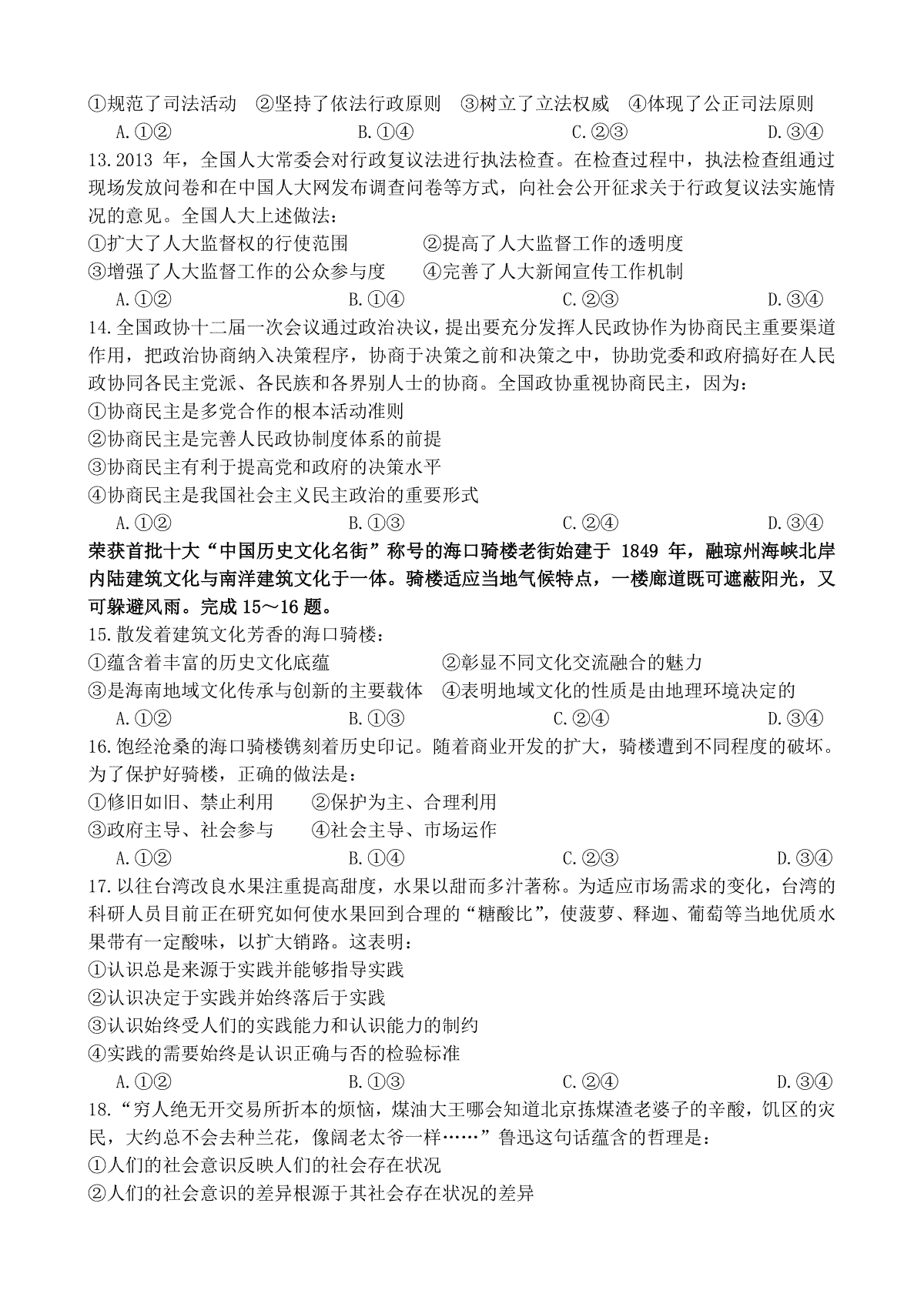 下载2014年海南省高考政治(原卷版)PDF格式或doc