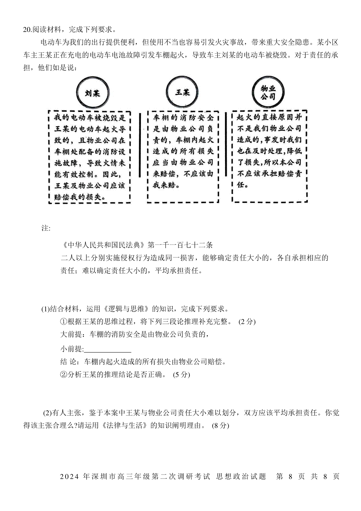 下载2024届深圳二模政治试题+答案PDF格式或doc
