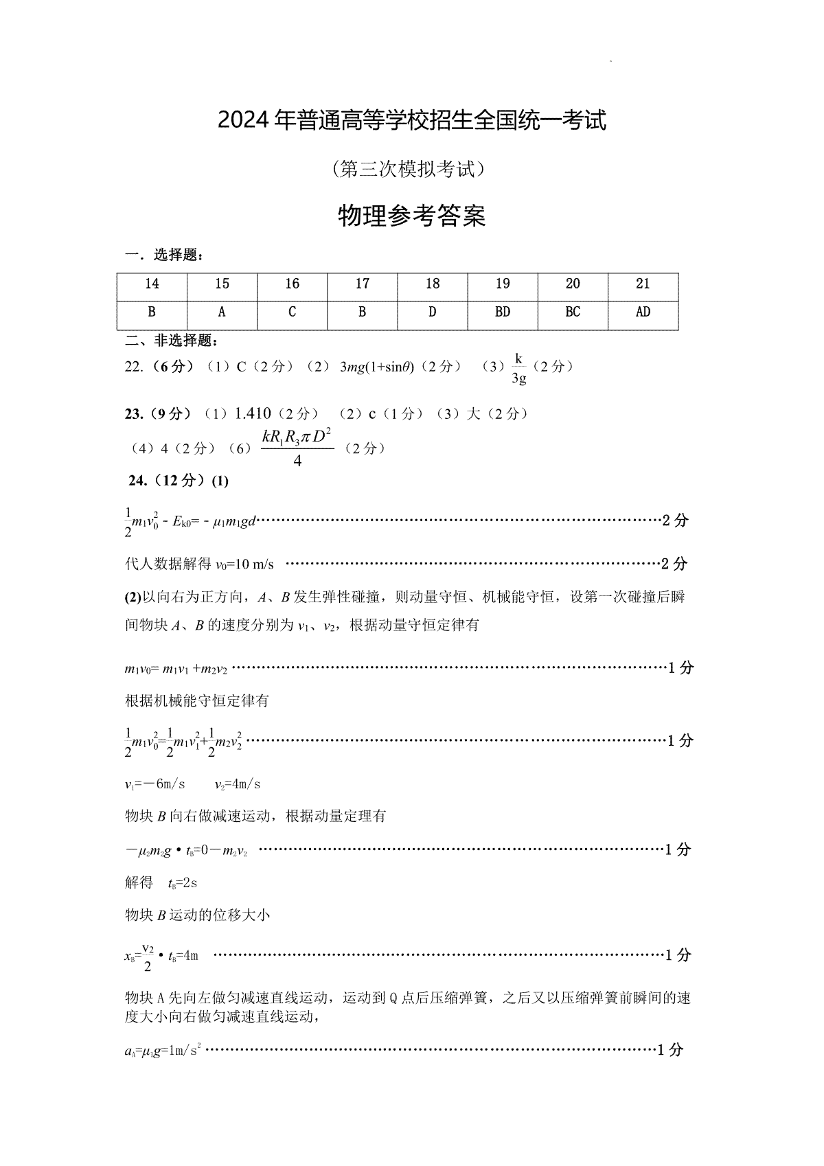 如果你想下载2024届内蒙古自治区包头市高三下学期第三次模拟考试理科综合答案DOC或PDF版,请点击本文末链接!